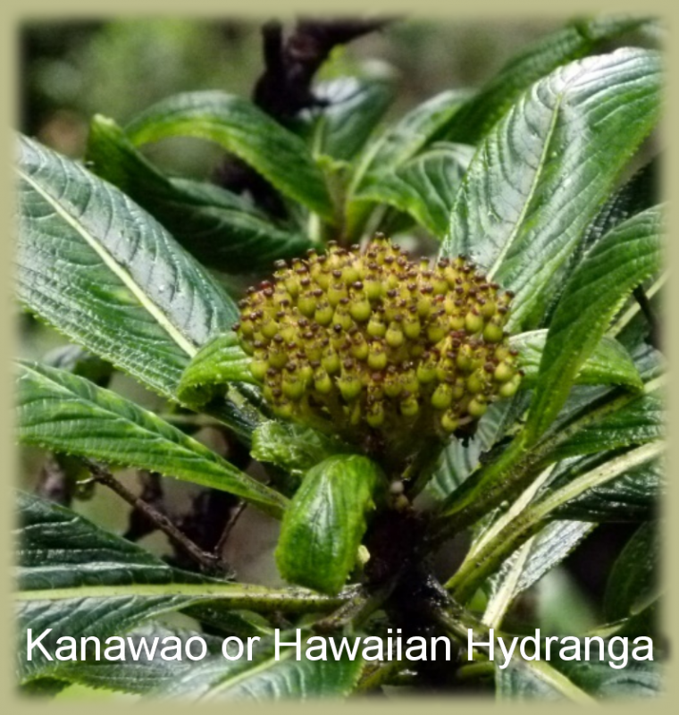 Here is one of the most widespread endemic species in Hawaiʻi, the Kanawao, blooming for us. It is perennial and evergreen. It is part of the hydrangea family.