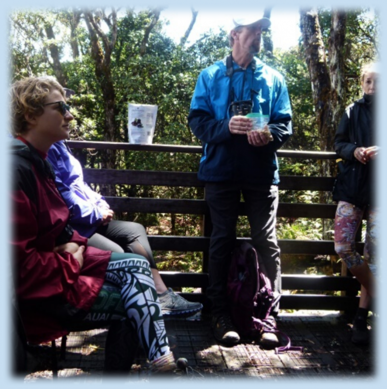 When you take the first step onto the boardwalk, prepare yourself for a radical change in the feeling of the forest. Here is a place like no other – it is an ancient endemic forest. Breathe in the special fragrances. Koa* and ʻŌhiʻa* abound, ferns cover the ground, and the songs of endemic and native bird species fill the air in an ancient chorus that will whisk you back to the feeling of pre-contact*.