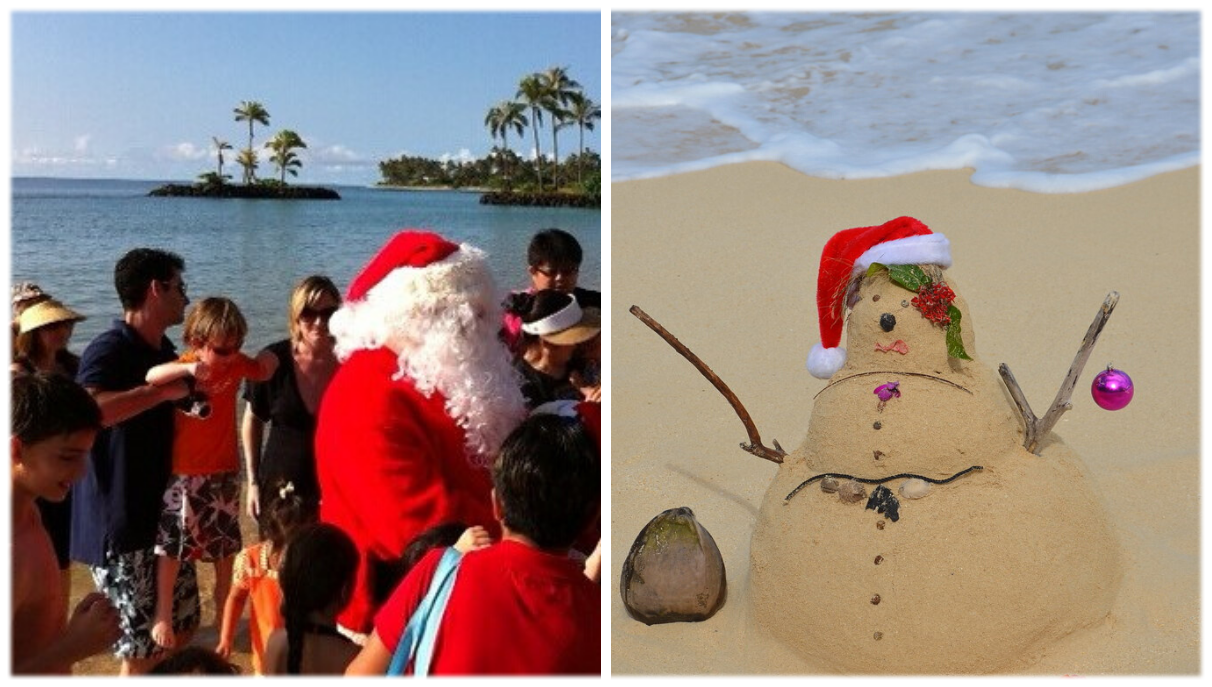 Santa Claus at the beach OR Build a Hawaiian Holiday Sand Man