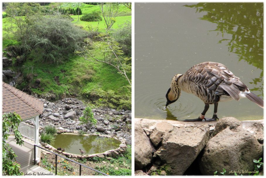 The garden’s diverse landscape includes a stream bed and a large koi pond. There are even a couple of resident Nēnē geese, the state bird of Hawai’i.